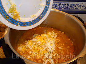 -Apagamos el fuego y le ponemos   el huevo rallado